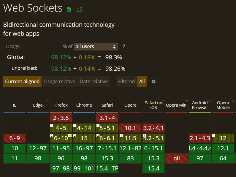 WebSocket이 나오기 이전의 브라우저들은 지원하지 않게 되었습니다.
