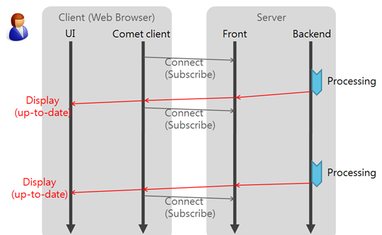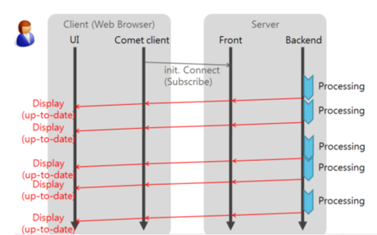 ( 즉, 클라이언트가 응답을 받았을 때 다시 다음 응답을 기다리는 요청을 보냅니다 )