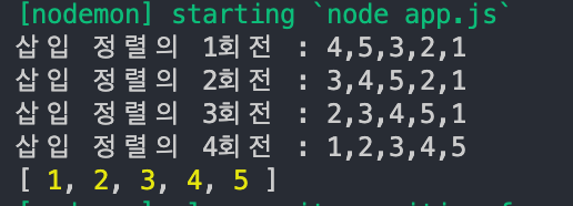 console.log(`삽입 정렬의 ${i}회전 : ${arr}`)