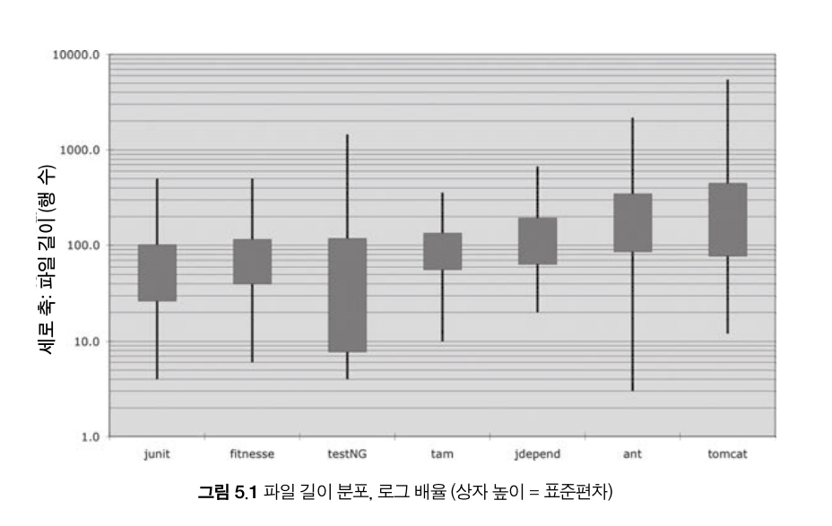 상자를 관통하는 세로 선은 해당 프로젝트의 최대 파일 길이와 최소 파일 길이를 나타낸다.