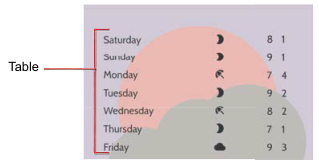 표의 각 셀은 같인 행의 다른 셀과 같은 높이를 가지며 같은 열의 다른셀과 같은 너비를 갖습니다.